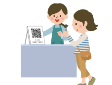 利用者がカード・スマートフォン等でQRコードを提示し、お店が読み取り決済する。